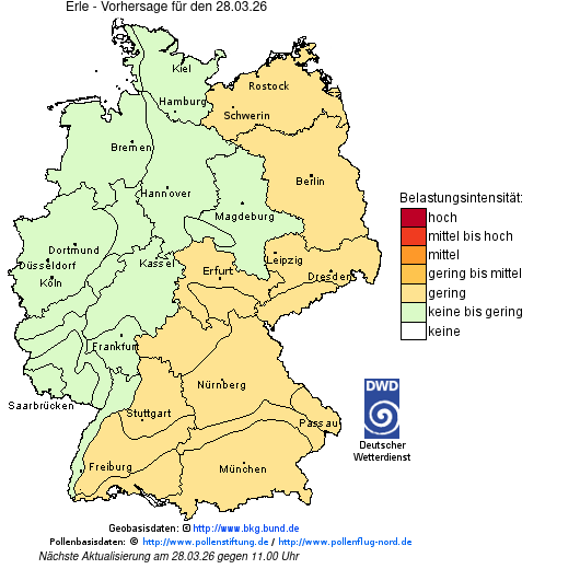 Hier geht es zur Pollenflug-Vorhersage von Erle für morgen, Montag, den 30. März 2026.